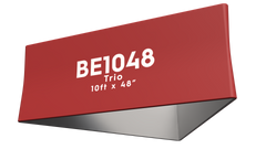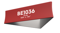 Our 10ft Blimp Trio hanging sign is composed of a network of interconnecting lightweight 1.25” metal top and bottom poles with rounded corners and the support poles connecting them snap together to create the frame. Once the pillowcase graphic is stretched overt the entire frame, the graphic holds the frame together. Despite being quite substantial when assembled, the entire Hanging Sign frame breaks down into a nice little bundle that fits into its accompanying carrying case.
