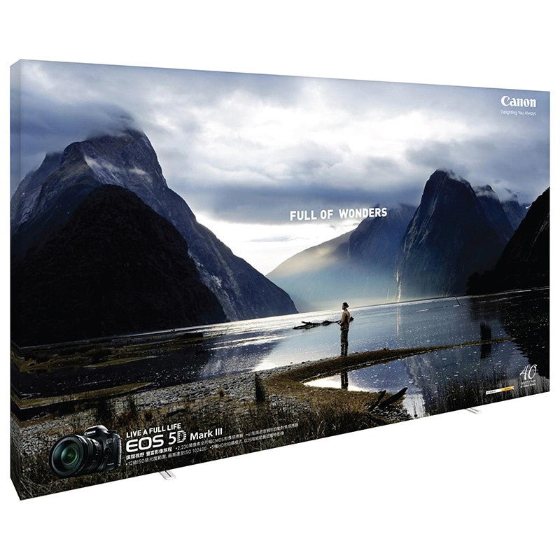 This 12ft Embrace Push-Fit Straight tension fabric display combines the convenience of a pop up frame with a streamlined look and innovation of a push-fit silicone edge fabric graphic. Unlike traditional tension fabric displays where the graphic attaches to the frame with velcro, the Embrace™ graphic pushes into a perimeter channel bars with the silicone beading around the graphic. By combining a lightweight inline pop up frame and an easy to install fabric graphic, this ensures a taut appearance to your graphic every time. No more worrying about wrinkles around the edges of your graphic due to stitching or velcro! And with a no tool setup, you’ll be amazed at the simplicity of this display every time.