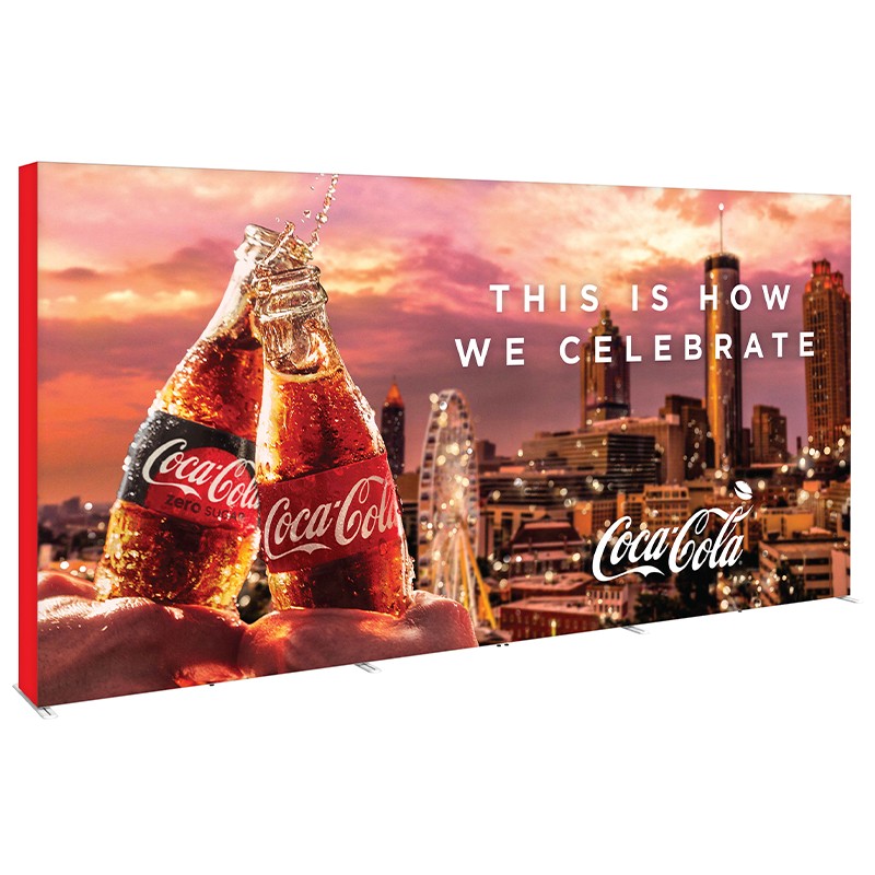 This 15ft Embrace Push-Fit Straight tension fabric display combines the convenience of a pop up frame with a streamlined look and innovation of a push-fit silicone edge fabric graphic. Unlike traditional tension fabric displays where the graphic attaches to the frame with velcro, the Embrace™ graphic pushes into a perimeter channel bars with the silicone beading around the graphic. By combining a lightweight inline pop up frame and an easy to install fabric graphic, this ensures a taut appearance to your graphic every time. No more worrying about wrinkles around the edges of your graphic due to stitching or velcro! And with a no tool setup, you’ll be amazed at the simplicity of this display every time.