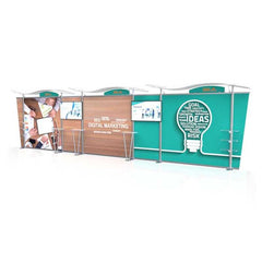 The 30ft Timberline hybrid trade show display series is the perfect combination of a modern, custom look without the expensive price tag. Your custom message will be delivered to all attendees by our high definition dye-sublimation printed graphics to show off your brand. Add custom printing to the top arch header to further allow your logo brand to stand out.