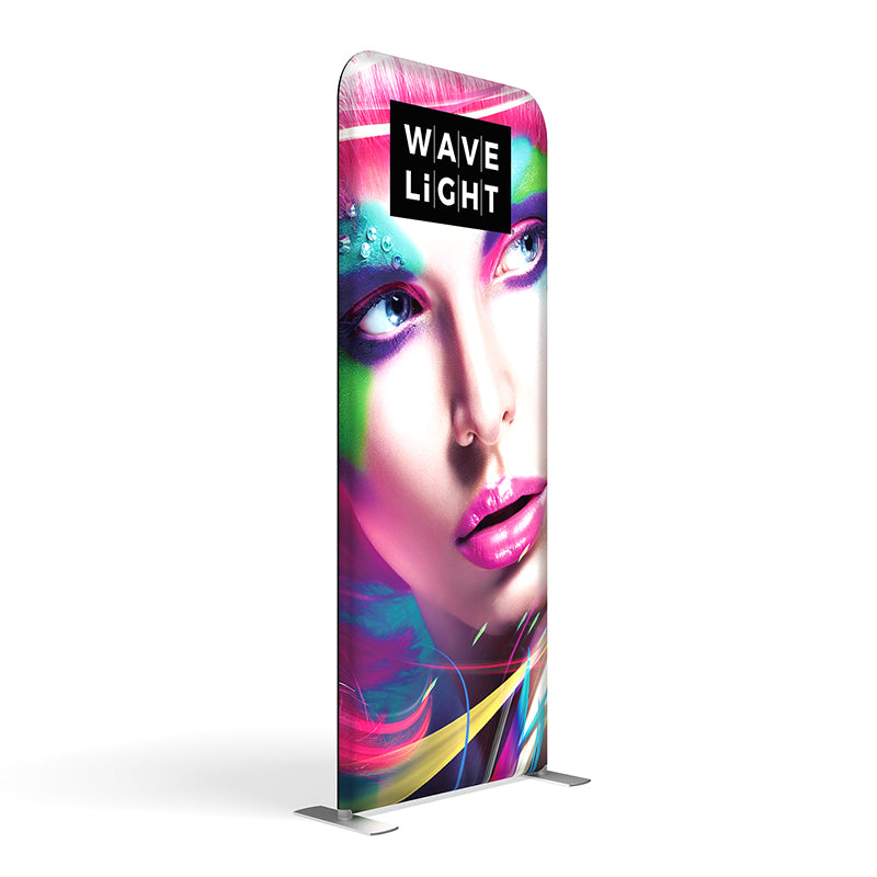 This 3ft Wavelight Backlit one of the thinnest tension fabric light boxes to hit the exhibit market. Within just a 50mm aluminum pipe profile (two inches), the WaveLight® frames an array of perfectly positioned LED lights to achieve an ultra-bright, evenly-diffused backlit display –making everything on the graphic look more brilliant and vibrant. Lightweight aluminum frame poles with bungee cords snap together to create the base framework, then slide on the pillowcase-like graphic over the frame and zip it closed at the bottom. The zipper is hidden from view and tightens up the stretched fabric graphic for a smooth image.