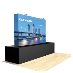 The durable, lightweight frame is covered by a 1 year defects warranty and allows for easy set-up, with no tools required. Everything packs quickly into the included carrying bag with wheels. Take your table top to the next level by adding upgrade items such as a hard shipping case and podium kit or LED stem lighting.