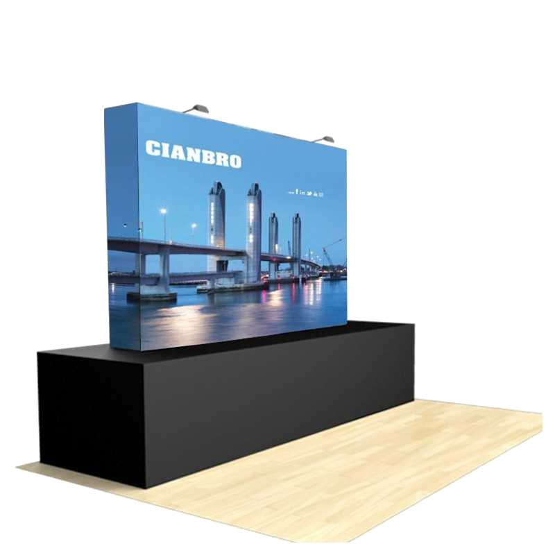 The Star table top is ready to place on any 8ft table once it's removed from the shipping box. Simply open the frame, connect the hooks, and your display is complete and ready to go. The printed fabric graphic is already attached to your pop-up frame and simply unfolds along with the pop-up frame and stretches to produce a smooth, full color continuous image.