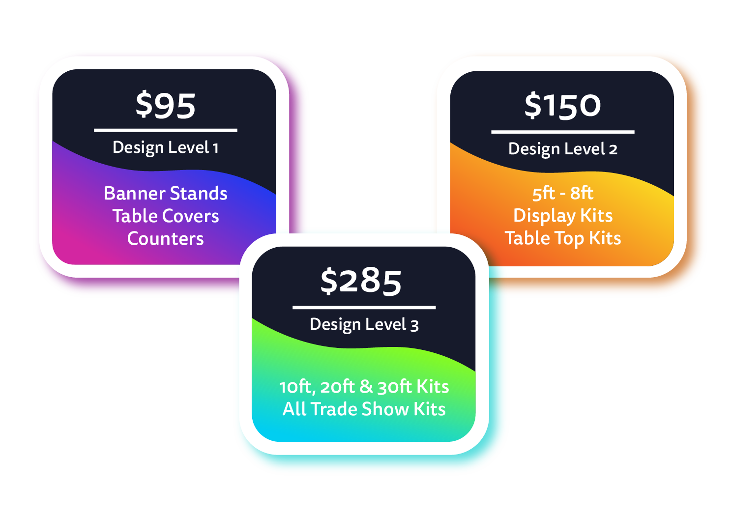 Inspiring designs capture audiences—period. You only have three seconds to make your one-of-a-kind booth space the talk of the show. You’re not a graphic designer, and that’s okay. That’s why it’s so important to choose a professional designer with experience in the trade show industry. A well-thought-out graphic design layout is the most important element of any trade show display. Why choose Affordable Exhibit Displays for your graphic design needs? With 30+ years of trade show industry design experience, color expertise, and large-format file preparation, we know how to make your display stand out.