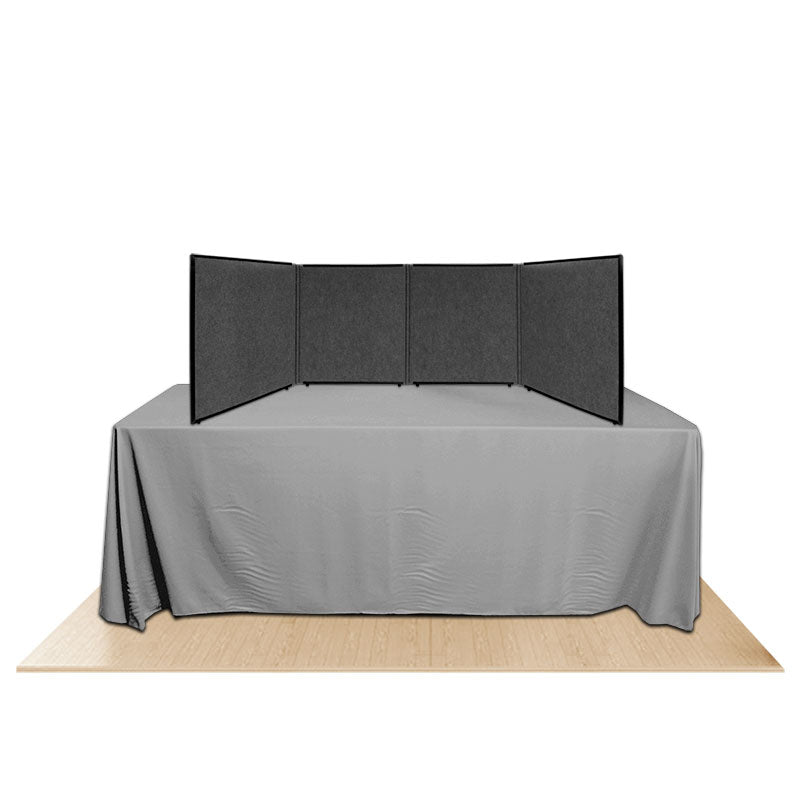 Promoter 24" 4-Panel Kit 01 table top display board features reversible Velcro receptive Premier fabric panels and canvas carry bag. With four 22" wide x 24" tall display panels, the small size and weight of this folding presentation board allows anyone to take their show on the road. Perfect for the frequent traveler, college presentations, conventions, job fairs, exhibitions or classrooms.