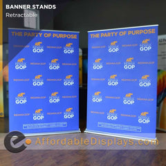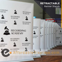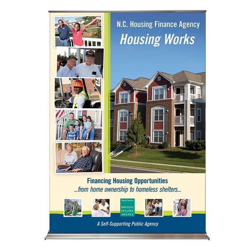 UltraBanner: 13oz matte vinyl banner material with a lay-flat ability designed specifically for use in retracting banner stands. This is our standard retracting banner stand material.